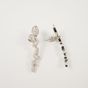 En parure avec le collier précédent : Paire de pendants d’oreilles en or gris 750 mil à motifs feuillagés stylisés sertis de diamants taille brillant. Systèmes pour oreilles percées. (Hauteur : 4cm environ). (Un pendant accidenté, déformations, deux pierres manquantes). 8,2 g. brut