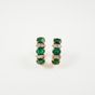 Paire de boucles d’oreilles 2 ors 585 mil serties d’émeraudes ovales intercalées de diamants taille brillant. Systèmes pour oreilles percées. (Hauteur : 1,7cm environ). (Une émeraude cassée, fêles, égrisures). 4,1 g. brut
