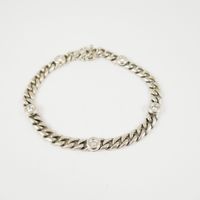Bracelet en or gris 585 mil. à maille gourmette alternée de 5 diamants brillantés en sertis clos de 0,07 carat chacun environ, fermoir cliquet avec double huit de sécurité. (Longueur : 19,5 cm). 25,4 g. brut