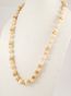 Collier d’un rang de perles de corail rose pâle légèrement en chute (diamètre : 9,7 à 13,4 mm) avec intercalaires en or 750 mil. (exemptés E) (Article 524 bis du CGI al. c), fermoir en or 585 mil. (Longueur : 59 cm environ). (Salissures, piquées, usures). 80,6 g. brut