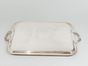 Grand plateau de présentation en métal argenté à 2 anses à décor de rouleaux et godrons moulurés. Travail français des années 1950 d’un orfèvre indéterminé. Dim. 51 x 41.2 cm. L. aux anses 61.2 cm. Légères rayures. TBE. Non chiffré.