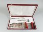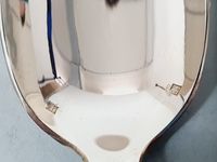 Maison BIENVENU-PLATIL, XXe siècle : ménagère rocaille en métal argenté de 105 pièces comprenant 12 grandes fourchettes, 12 grandes cuillers, 12 cuillers à café, 1 louche, 12 grands et 12 petits couteaux lames inox signées PLATIL, 12 fourchettes et 12 couteaux à poisson, 1 couvert à servir le poisson, 1 couvert à salade, 1 service à découper 2 pièces, 12 fourchettes à gâteaux, 2 pelles à tarte. Poinçon de fabricant J. N. au homard. Légères rayures d’usage notamment sur les grandes fourchettes. TBE général.5 écrins signés au stylo-bille : 4 GINETTE et le plus grand BETTY. Ménagère non chiffrée.