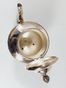 WISKEMANN à Bruxelles, Années 1930 : théière ovoïde en métal argenté, modèle balustre quadripode à frises de lauriers et agrafes de feuilles d’acanthe, la graine en fruit éclaté. Signée et numérotée. H. 21 cm. TBE général.