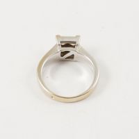 Bague en or gris 750 mil centrée de quatre diamants princesse épaulés de pavage de diamants (TDD : 52) (1 pierre accidentée dans le pavage). 6,8 g brut.