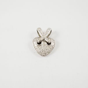 Collier en or gris 750 mil à maillons ovale (Long : 60 cm), Pendentif en or gris 750 mil bordé de diamants, retenant un élément de nacre figurant une griffe (Haut : 7 cm environ). 55,3 g brut.