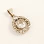 Collier vénitiens en or gris 750 mil (Long : 56 cm), Pendentif en or gris 750 mil et platine 850 mil centré d'un diamant TA (environ 0,60 ct) en pampille, entouré de diamants TA dans un serti perlé (Dim sans bélière : 1,4 cm). 9,2 g brut.