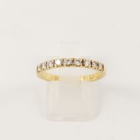 Demi-alliance en or 750 mil ornée d'une ligne de diamants (environ 0,45 ct au total) (TDD : 56,5). 3,7 g brut.