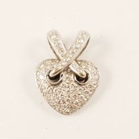 Pendentif coeur diamanté en or gris 750 mil, bélière figurant un lien diamanté (Haut avec bélière : 3 cm; Larg : 2,3 cm). 14,1 g brut.