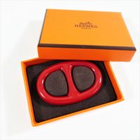 HERMES. Anneau de carré « Chaîne d’ancre » en céramique rouge lie de vin . Signé. Hauteur : 3,5cm, largeur : 5,5cm environ. Boîte d’origine. Très bon état.