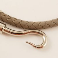 HERMES. Collier « Jumbo » ras du cou en cuir tressé taupe, fermoir « hameçon » en métal argenté palladié. (Longueur : 37cm environ)
