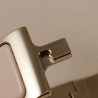 HERMES Paris Made in France. Bracelet jonc ouvrant “Clic H” en métal argenté palladié émaillé blanc rosé. Fermeture pivotant figurant un « H ». Largeur 20mm,diamètre : 6 cm.