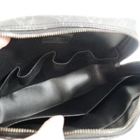 Louis VUITTON. Trousse de toilette en toile Monogram Eclipse et cuir (2019). Intérieur en vinyle noir, double poche ouverte intérieure, passants élastiques. 18 x 25 x 8cm environ. Très bon état.