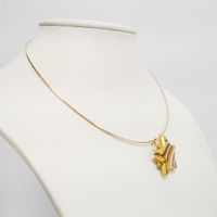 Collier BERNARDAUD en métal doré à maille câble retenant un pendentif « étoile » en métal doré et porcelaine émaillée polychrome et or. Signés du « B » de la Maison. (Longueur : 39cm ; Dimensions motif : 3x3cm environ). (Légers frottements à l’or).