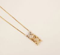 Collier CHAUMET, Collection « Jeux de liens », en or jaune, or gris et or rose 750 mil à motifs de trois liens croisés superposés, montés sur une chaîne à maille forçat limée, l’un serti de diamants taille brillant. Signé et numéroté. (Longueur ajustable : 38 - 41 - 45cm environ). 7 g. brut