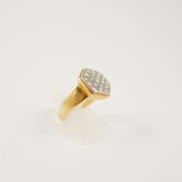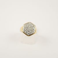 Bague en or 750 mil. et platine 850 mil. à chaton hexagonal pavé de diamants brillantés. (TDD : 49) (Anneau ressort interne cassé). 7 g. brut.