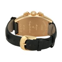 FRANCK MULLER. Montre d’homme curvex or rose 750 millièmes avec chronographe. Boîtier curvex avec fond fermeture à vis. Cadran argenté et guilloché avec chiffres arabes, trois compteurs pour l’indication des heures, des minutes et des secondes, date à guichet, minuterie chemin de fer 1/5e de seconde au centre. Mouvement mécanique avec remontage automatique. Bracelet en cuir avec boucle ardillon en or rose 750 millièmes. Dimensions : 39,5 × 55 mm. Poids brut :151,7 g. Référence : 8880 CC AT. No180. Sans écrin ni papiers.