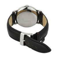JAEGER LE COULTRE Montre d’homme ronde en acier. Boîtier rond, fond fermeture à pression. Cadran blanc avec index bâtons appliqués. Mouvement mécanique à remontage manuel signé Jaeger Le Coultre. Fond du boîtier signé Le Coultre. Diamètre : 33,5 mm. No 9016 1076882. Sans écrin ni papiers.