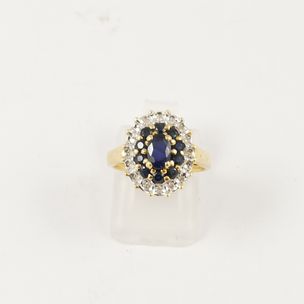 120 / 160 €Bague fleur en or 750 mil centrée de saphirs dans un entourage de diamants 8/8 (TDD : 49). 4 g brut.