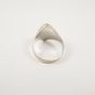 Bague chevalière en or gris 750 mil. à chaton navette centré d’un diamant brillanté de 0,15 carat environ dans un entourage de diamants brillantés (TDD : 56,5). 4,3 g. brut