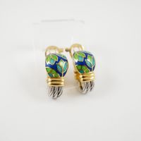 Demi-parure FRED Paris « Force 10 » en acier et or 750 mil. à motifs émaillés bleu et vert, composée d’un collier semi-rigide (fermoir à glissière invisible) et d’une paire de clips d’oreilles, signés (longueur : 40 cm environ) (hauteur : 1,9 cm environ). 51,6 g. brut