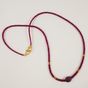 [Exempté : art. 524 bis du CGI al. c] Collier de rubis et de diamants, centré d’un motif galet en argent 800 mil. pavé de rubis ronds, fermoir et viroles en or 750 mil. (longueur : 47 cm environ). 10,2 g. brut
