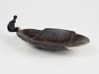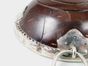 2 tasses de chasse du XVIIIe et du XIXe siècle :- l’une du XVIIIe siècle en demi-noix de coco sculptée à monture en argent dentelé bordé de 3 fleurs de lys ciselées avec anneau d’attache. Travail français provincial. Poinçons sur l’anneau. Exemptée art. 524 bis al. a du CGI. Poids brut : 55.4 g. Déformations d’usage et petite fente à la noix de coco. L. 11 cm. Largeur : 9.5 cm. H. 4 cm. TBE de fraicheur.- L’autre ovale dans le style de la fin du XVIIe siècle en corne brune oblongue à monture festonnée en argent riveté. Anneau d’attache latéral. Travail allemand de la fin XIXe de la maison BERNDOFF. L. 17.7 cm. largeur : 10.8 cm. H. 3.4 cm.