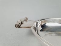 LEVERT & CIE, 2 corbeilles à pain des années 1930-1940 en métal argenté, modèle ovales, l’une moulurée à prise de gradins (L. 34 cm, H. aux anses : 5 cm - quelques gouttes de soudure sur le bord de 2 côtés), l’autre à prise en éventail de rouleaux en gradins (L. 37 cm, H. aux anses : 4.8 cm). Poinçons de Maître LC au motto RES NON VERBA et à la main ouverte. Rayures d’usage.