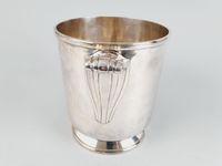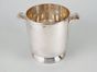 LEVERT & CIE, Années 1930-1940 : Seau à champagne en métal argenté, modèle à piédouche rond mouluré de gradins, les anses à rouleaux. Poinçon de Maître LC au motto RES NON VERBA et à la main ouverte (actif 1922-1947). Usures notamment internes et rayures d’usage. H. 21.2 cm. Diam. 18.4 cm.