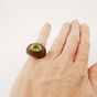 Bague dôme en bois et argent 800 mil sertie d’un péridot ovale (TDD : 48,5) (égrisures, léger fêle au bois) (E) Art 524 du CGI al. C). 8,8 g brut.