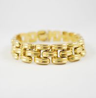 2 Bracelets en or 750 mil, l’un à maillons géométriques godronnés et l’autre à maillons ovales, fermoirs à cliquet et huit de sécurité. Travail français. (Longueurs : 19cm environ). (Chocs). 31,7 g. brut