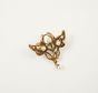 Broche en or 750 mil à décor de branches de gui rehaussé de perles blanches probablement fines. Broche à transformation pouvant former bouton de plastron ou pendentif. Poinçon de Maître Auguste Gross, Langoulant et Cie. Travail français Art Nouveau vers 1900, l’épingle numérotée 9503. (Dimensions : 3x3cm environ). 7,7 g. brut