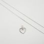 Pendentif « Cœur » en or gris 750 mil, ajouré et rehaussé d’un diamant taille 8/8. (Hauteur : 1,5cm environ). 0,6 g. brut Fine chaîne en or gris 750 mil à maille forçat limée. (Longueur : 40cm environ). 1,7 g. Poids total brut : 2,3 g.