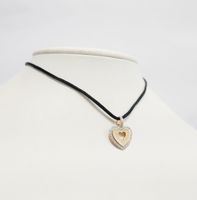 Pendentif POIRAY Collection « Cœur Secret » en or jaune et or gris 750 mil serti de diamants taille brillant. Signé et numéroté. (Dimensions : 1,9x1,6cm environ). (Légères rayures). 2,8 g. brut Joint : Cordon de soie noire, extrémités en or 750 mil exemptées. (Longueur : 65cm environ). [Article 524 bis du CGI alinéa c]. 1 g. brut Poids total brut : 3,8 g.