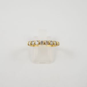120 / 180 €Demi-alliance en or 750 mil. sertie de 8 diamants brillantés de 0,07 carat environ (TDD : 58). 2,9 g. brut
