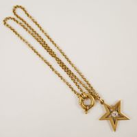 Collier en or 750 mil. à maille jaseron retenant un pendentif étoile ajouré centré d’un diamant brillanté de 0,30 carat environ (longueur : 46,5 cm environ) (hauteur pendentif : 3,5 cm environ). 19,2 g. brut