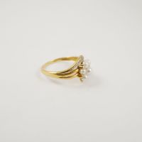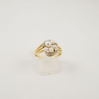 Lot en 2 ors 750 mil. composé d’une chaîne (longueur : 52,2 cm environ), d’un pendentif (camée coquille) (hauteur : 3,3 cm environ) et d’une bague (perles de culture, diamants 8/8) (TDD : 57). 11,6 g. brut