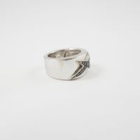 Bague bandeau MAUBOUSSIN « Etoile Divine » en or gris 750 mil à motif d’étoile serti de diamants noirs. Signée et numérotée. (TDD : 50 ; Largeur : 1cm environ). (Rayures). 12 g. brut