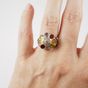 Bague « Fleur » en or gris 750 mil, le pistil pavé de diamants taille brillant, chaque pétale orné d’une pierre fine de taille ovale en serti clos. (TDD : 55). (Légères égrisures). 4,9 g. brut