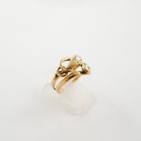 Bague « Serpents » en or rosé 750 mil, les têtes serties de diamants demi-taille de 0.15 carat environ chaque. (TDD : 49). (Déformations). 4,3 g. brut Bague en or gris 750 mil à chaton géométrique centré d’un diamant taille rose. (TDD : 57). 1,8 g. brut Poids total brut : 6,1 g. brut