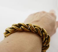 Bracelet en or 750 mil à large maille gourmette torse ciselée. (Longueur : 21cm ; Largeur : 1,2cm environ). (Chocs, soudures). 49,1 g.