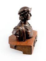 D’après Émile Edmond PEYNOT (1850-1932) « Christophe Colomb » Epreuve en bronze à patine brune signée et datée 1893 sur le côté. Socle en bois avec cartouche. Hauteur (sans le socle) : 23 cm.