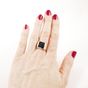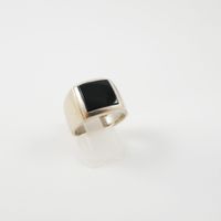 Bague chevalière en or gris 750 mil sertie d’une plaque d’onyx (TDD : 55,5) (égrisures). 10,2 g. brut.