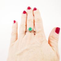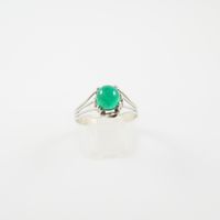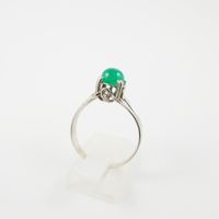 Bague composée de fils de platine 850 mil sertie d’une émeraude cabochon (TDD : 63,5) (égrisures, fêles, déformations). 4,2 g. brut.