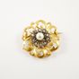 Broche fleur en or 750 mil et argent 800 mil centrée d’une perle de culture entourée de roses (diamètre : 2,7 cm) (accident, déformation). Travail français fin XIXème. 5,3 g. brut.