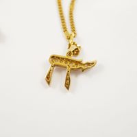 Pendentif Haï en or 750 mil pavé de diamants brillantés (dimensions avec bélière : 2,3 cm x 2,2 cm), sur collier en or 750 mil (longueur : 47 cm). 17,8 g. brut.