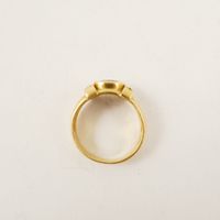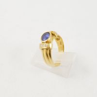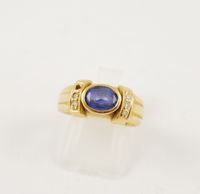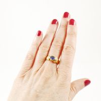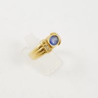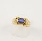 Bague godronnée en or 750 mil. centrée d’un saphir