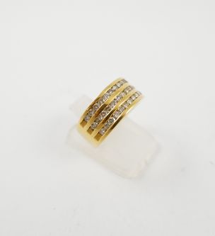 Collier en or 750 mil. à maille palmier méplat centré d’un diamant brillanté en serti clos de 0,45 carat environ, fermoir cliquet à double huit de sécurité. (Longueur : 42,5 cm). 40,6 g. brut.