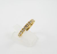 Demi-alliance US en or 750 mil. ornée de 14 diamants brillantés en serti griffes de 0,05 carat environ chacun. (TDD : 54). 3,7 g. brut.