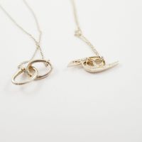 Deux colliers TIFFANY & Co en argent 925 mil., l’un par Elsa Peretti retenant 2 anneaux entrelacés, le second par Paloma Picasso retenant un motif de nœud infini. Signés. (Longueur : 39 et 40 cm environ, hauteur : 1 et 0,9 cm environ). 5,2 g.
