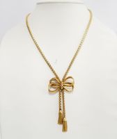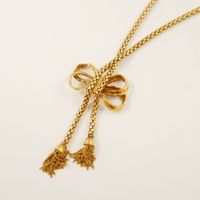 Collier négligé en or 750 mil. à maille orvet orné d’un nœud ajouré terminé par deux pompons, fermoir avec chaînette de sécurité en or 750 mil. Travail français années 40-50. (Longueur : 42,5 cm). 23,7 g.